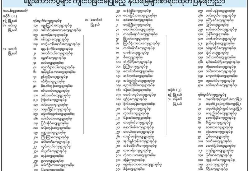 ရွေးကောက်ပွဲများ ကျင်းပခြင်းမပြုမည့် နယ်မြေများစာရင်း ထုတ်ပြန်ကြေညာ