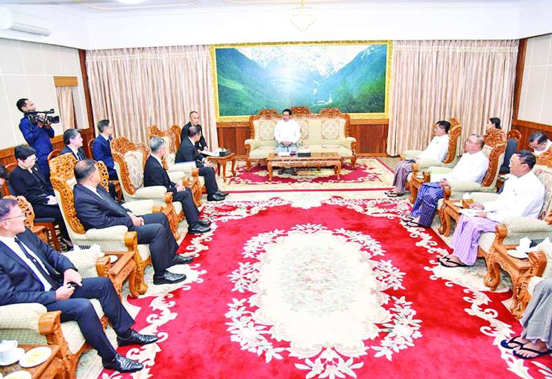 ပြည်ထောင်စုသမ္မတမြန်မာနိုင်ငံတော် ယာယီသမ္မတ နိုင်ငံတော်လုံခြုံရေးနှင့် အေးချမ်းသာယာရေးကော်မရှင်ဥက္ကဋ္ဌ ဗိုလ်ချုပ်မှူးကြီးမင်းအောင်လှိုင်ထံ ထိုင်းနိုင်ငံ၊ နိုင်ငံခြားရေးဝန်ကြီး H.E. Mr.Sihasak Phuangketkeow ဦးဆောင်သည့် ကိုယ်စားလှယ်အဖွဲ့က ယနေ့မွန်းလွဲပိုင်းတွင် နေပြည်တော်ရှိ ဘုရင့်နောင်ရိပ်သာဧည့်ခန်းမ၌ လာရောက်ဂါရဝပြုတွေ့ဆုံသည်။