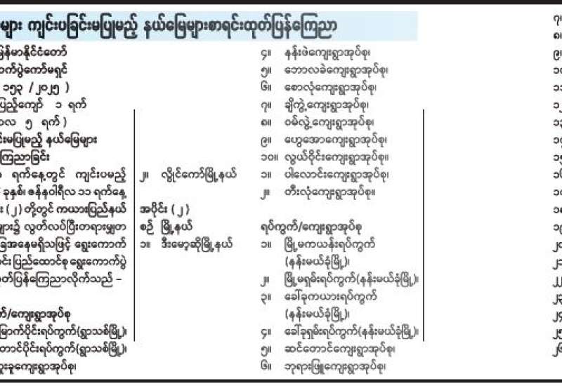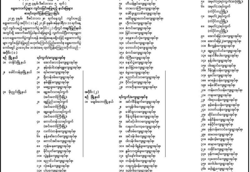 ရွေးကောက်ပွဲများ ကျင်းပခြင်းမပြုမည့် နယ်မြေများ စာရင်းထုတ်ပြန်ကြေညာ
