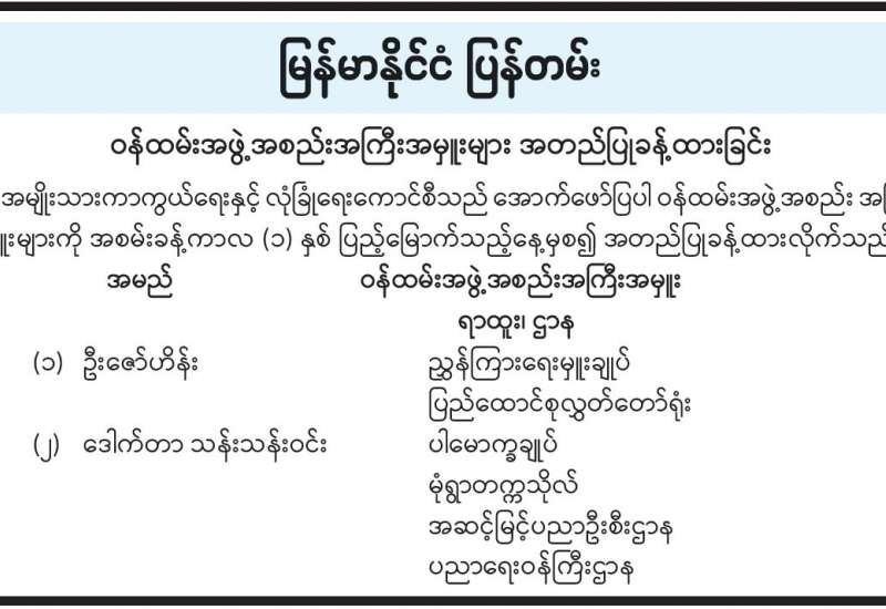 ဝန်ထမ်းအဖွဲ့အစည်းအကြီးအမှူးများ အတည်ပြုခန့်ထားခြင်း