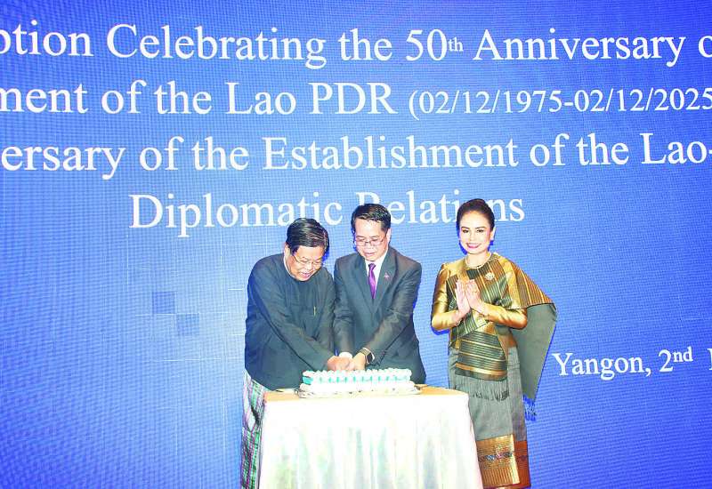 လာအိုပြည်သူ့ဒီမိုကရက်တစ်သမ္မတနိုင်ငံ တည်ထောင်သည့် နှစ်(၅၀)ပြည့် နှစ်ပတ်လည်နှင့် မြန်မာ-လာအို နှစ်နိုင်ငံအကြား သံတမန်ဆက်ဆံရေးထူထောင်မှု နှစ်(၇၀)ပြည့် နှစ်ပတ်လည်အထိမ်းအမှတ် ဧည့်ခံပွဲအခမ်းအနားကို ယနေ့ညနေ ၆ နာရီခွဲတွင် ရန်ကုန်မြို့ Pan Pacific Hotel ၌ ကျင်းပရာ နိုင်ငံခြားရေးဝန်ကြီးဌာန ပြည်ထောင်စုဝန်ကြီး ဦးသန်းဆွေ တက်ရောက်သည်။