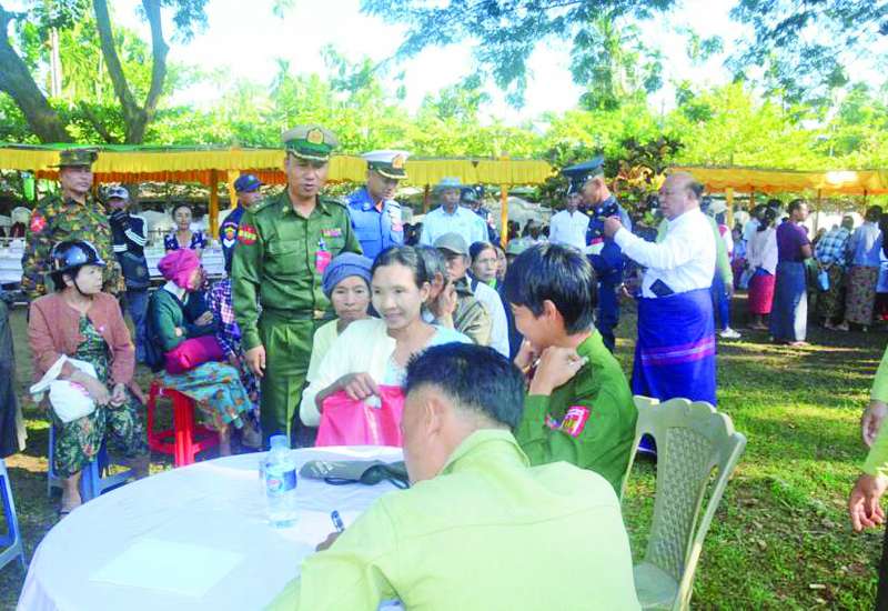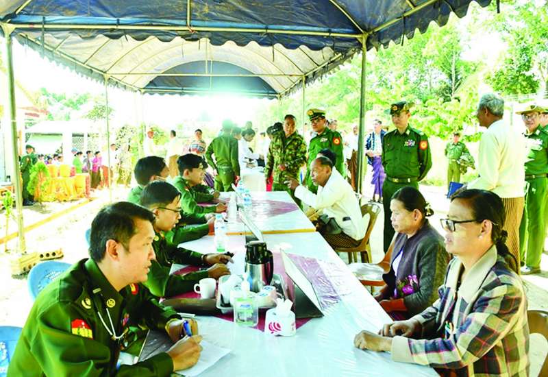ရှမ်းပြည်နယ်(တောင်ပိုင်း) တောင်ကြီးမြို့နယ် အေးသာယာမြို့ ရပ်ကွက်(၁၁)ရှိ စစ်မှုထမ်းဟောင်းအိမ်ရာ၌ နေထိုင်လျက်ရှိသော စစ်မှုထမ်းဟောင်း မိသားစုဝင်များအား ဆန်၊ ဆီ၊ ကြက်ဥနှင့် စားသောက် ဖွယ်ရာများပေးအပ်ခြင်းကို ယနေ့နံနက်ပိုင်းတွင် စစ်မှုထမ်းဟောင်းအိမ်ရာရှိဓမ္မာရုံ၌ ပြုလုပ်ရာ အရှေ့ပိုင်းတိုင်းစစ်ဌာနချုပ်တိုင်းမှူး ဗိုလ်မှူးချုပ်ကျော်နိုင်ဦးနှင့် တာဝန်ရှိသူများ၊ စစ်မှုထမ်းဟောင်း မိသားစုဝင်များ တက်ရောက်ကြသည်။