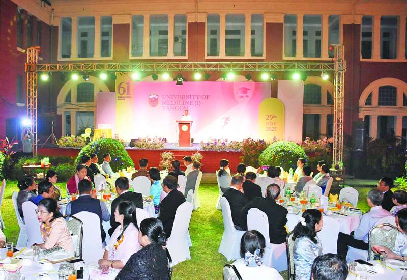 ကျန်းမာရေးဝန်ကြီးဌာန၊ ကျန်းမာရေးလူ့စွမ်းအားအရင်းအမြစ်ဦးစီးဌာန၊ ဆေးတက္ကသိုလ် (၁) ရန်ကုန် (၆၁) ကြိမ်မြောက် ဘွဲ့နှင်းသဘင်ဂုဏ်ပြုညစာစားပွဲအခမ်းအနားကို ယမန်နေ့ ညနေ ၆ နာရီက ဆေးတက္ကသိုလ် (၁) ရန်ကုန်လမ်းမတော်မြက်ခင်းပြင်၌ ကျင်းပသည်။