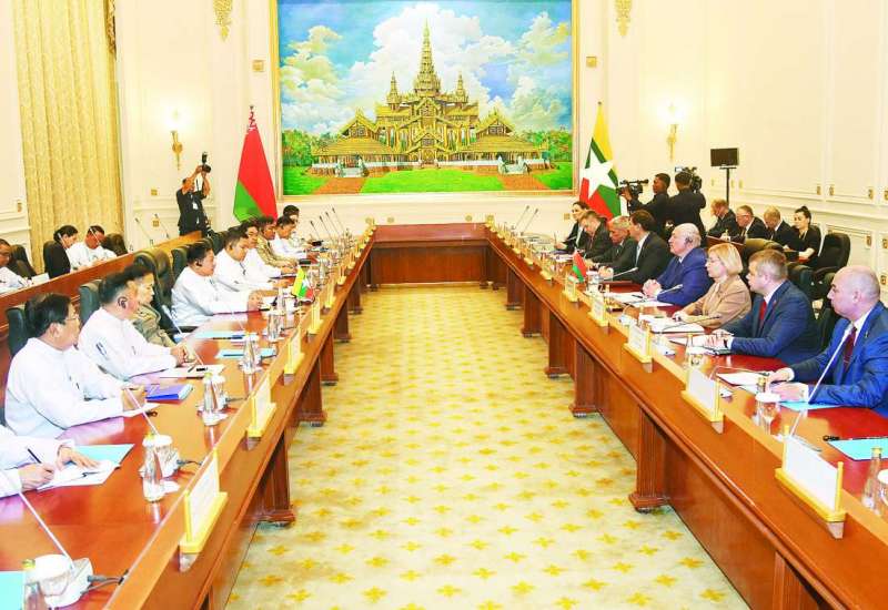 ပြည်ထောင်စုသမ္မတမြန်မာနိုင်ငံတော်နှင့် ဘယ်လာရုစ်သမ္မတနိုင်ငံတို့အကြား နှစ်နိုင်ငံတွေ့ဆုံဆွေးနွေးပွဲကို ယနေ့နံနက်ပိုင်းတွင် သမ္မတအိမ်တော်၊ သံတမန်ဆောင်ဧည့်ခန်းမ၌ ကျင်းပပြုလုပ်သည်။