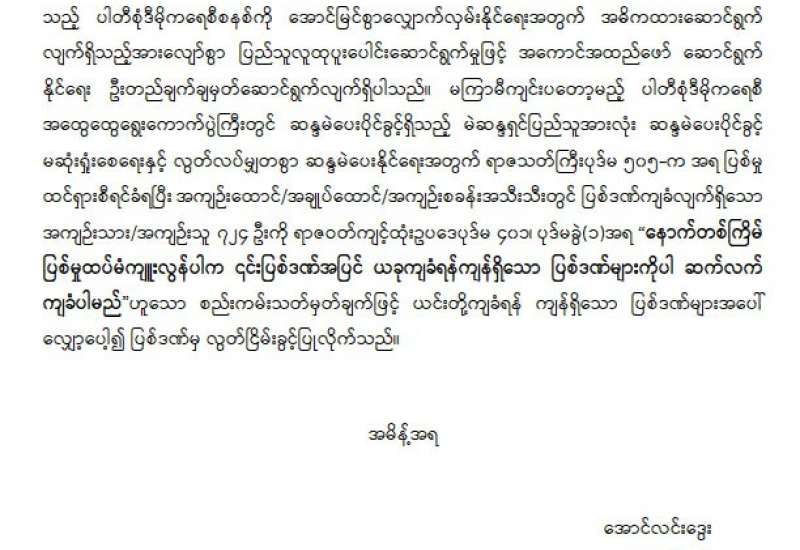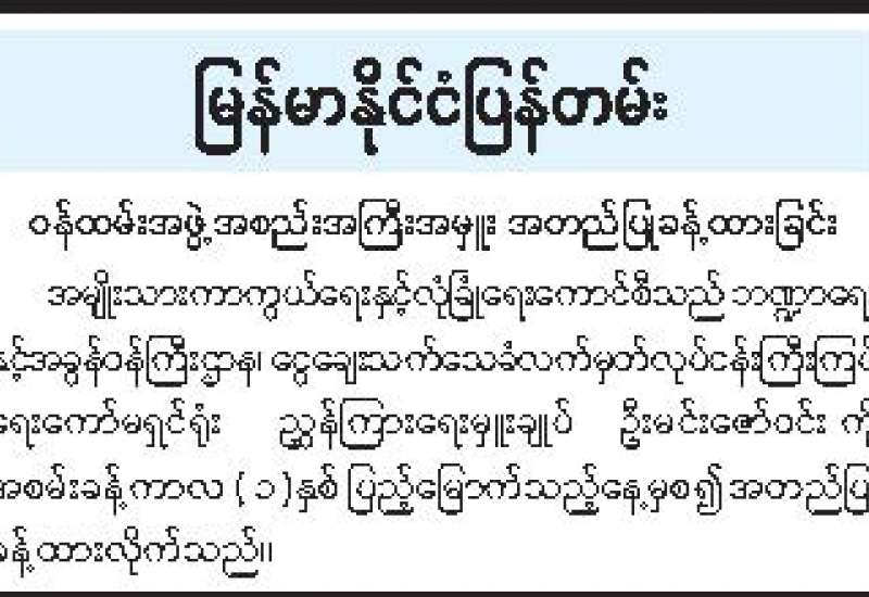 ရန်ကုန်မြို့နှင့် မန္တလေးမြို့အတွက် ရည်ညွှန်းလက်ကားဈေးနှုန်းများနှင့် ပြည်ထောင်စုနယ်မြေ နေပြည်တော်၊ တိုင်းဒေသကြီး/ပြည်နယ် မြို့တော်များအတွက် ရည်ညွှန်းလက်လီဈေးနှုန်းများ