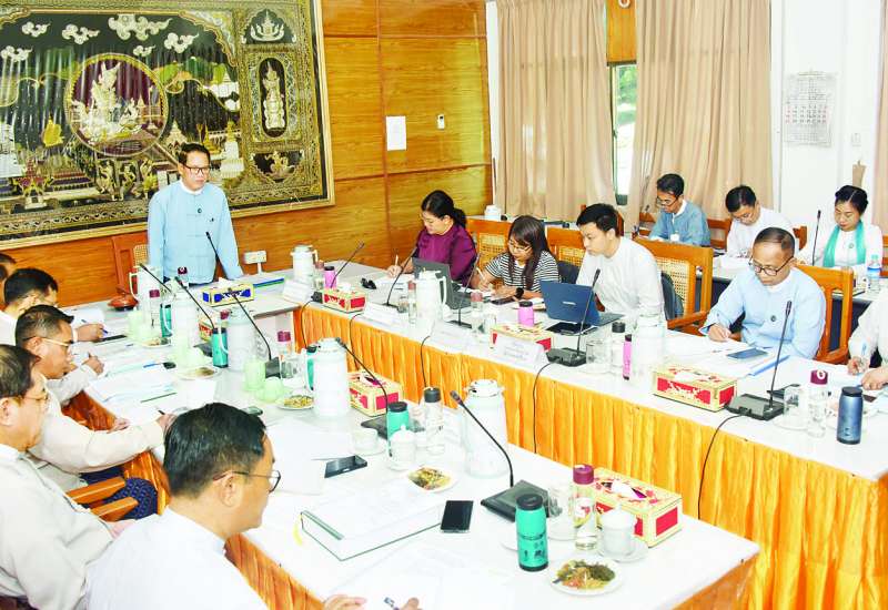 ပြန်ကြားရေးဝန်ကြီးဌာန ပုံနှိပ်ရေးနှင့်ထုတ်ဝေရေးဦးစီးဌာန စာဆိုဗိမာန် RC သုံးထပ်အဆောက်အအုံတည်ဆောက်နေမှုနှင့် စာပေဗိမာန်ပြည်သူ့စာကြည့်တိုက်အဖြစ် ပြောင်းရွှေ့ဖွင့်လှစ်ရန် ဆောင်ရွက်နေမှုအခြေအနေများ ရှင်းလင်းတင်ပြခြင်းကို ယနေ့မွန်းလွဲပိုင်းက နေပြည်တော်ရှိ ပြန်ကြားရေးဝန်ကြီးဌာန အစည်းအဝေးခန်းမ၌ ပြုလုပ်သည်။
