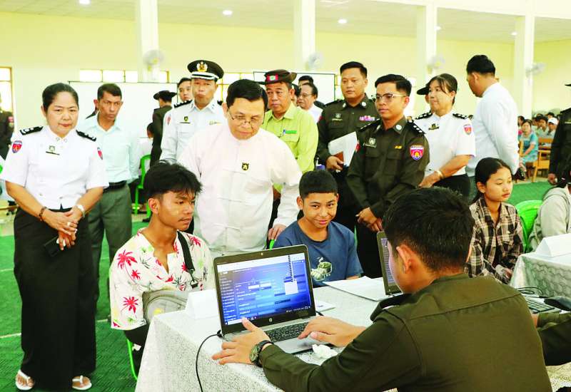 လူဝင်မှုကြီးကြပ်ရေးနှင့် ပြည်သူ့အင်အားဝန်ကြီးဌာန ပြည်ထောင်စုဝန်ကြီး ဦးမြင့်ကြိုင်သည် တာဝန်ရှိသူများနှင့်အတူ ယနေ့မွန်းလွဲပိုင်းက ဧရာဝတီတိုင်းဒေသကြီး ကျုံပျော်မြို့ ဧရာမင်းခန်းမ၌ လူဝင်မှု ကြီးကြပ်ရေးနှင့် ပြည်သူ့အင်အားဝန်ကြီးဌာန ကျုံပျော်မြို့နယ်ဦးစီးမှူးရုံးမှ ဝန်ထမ်းများက အိမ်ထောင်စုလူဦးရေစာရင်းနှင့် နိုင်ငံသားစိစစ်ရေးကတ်ပျက်စီး၊ ပျောက်ဆုံးသွားသည့် ဒေသခံပြည်သူများနှင့် နိုင်ငံသားစိစစ်ရေးကတ် မရရှိသေးသူများအား ပန်းခင်းစီမံချက်အဆင့် (၃) ဖြင့် ဆောင်ရွက်ပေးနေမှုကို ကြည့်ရှုအားပေးသည်။