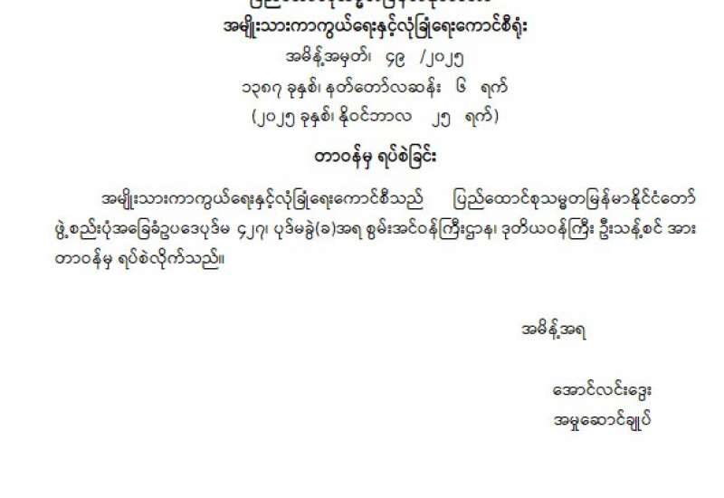 အကြမ်းဖက်အုပ်စုအဖြစ် ကြေညာထားသည့် CRPH ၊ NUG နှင့် ယင်းတို့၏ လက်ဝေခံအဖွဲ့အစည်းများ၊ ယင်းတို့နှင့် ဆက်နွှယ်နေသောအဖွဲ့အစည်းများ၊ လူပုဂ္ဂိုလ်များသည် နိုင်ငံတော်တည်ငြိမ်အေးချမ်းရေးကို ပျက်ပြားစေရန်နှင့် အစိုးရယန္တရားများပျက်ပြားစေရန် ရည်ရွယ်လျက် လှုံ့ဆော်ခြင်း၊ ဝါဒဖြန့်ခြင်းများပြုလုပ်ခဲ့မှုအပေါ် ဥပဒေနှင့်အညီ ထိရောက်စွာ အရေးယူသွားမည်ဖြစ်ကြောင်းနှင့် ထိုသို့ လှုံ့ဆော်သူ၊ ဝါဒဖြန့်သူများအား ဆက်လက်ဖော်ထုတ်အရေးယူသွားမည်ဖြစ်ကြောင်း မိဘပြည်သူများ သိရှိနိုင်ရေး အသိပေးသတင်းထုတ်ပြန်ပြီးဖြစ်သည်။