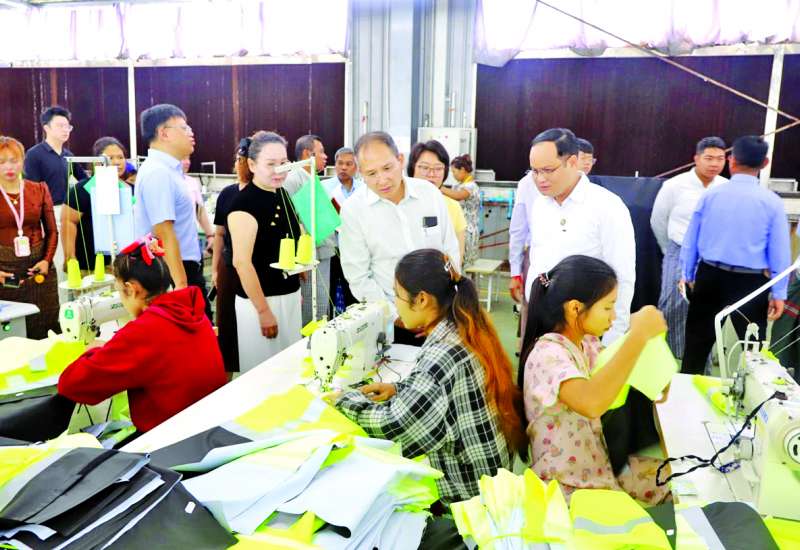 အလုပ်သမားဝန်ကြီးဌာန ပြည်ထောင်စုဝန်ကြီး ဦးအောင်ကျော်ဟိုးသည် ရန်ကုန်တိုင်းဒေသကြီးရှိ အလုပ်သမားရေးရာဌာနများမှ တာဝန်ခံအရာထမ်းများနှင့်အတူ ယနေ့နံနက်ပိုင်းတွင် လှိုင်သာယာ (အနောက်ပိုင်း) မြို့နယ်ရှိ Myanmar Dihuali Garment Co.,Ltd၊Myanmar Fortress Wealth Garment Co.,Ltd၊ Myanmar Dixinda Garment Co.,Ltd နှင့် Myanmar Hua Da Garment Co.,Ltd အထည်ချုပ်စက်ရုံများ လုပ်ငန်းလည်ပတ်ဆောင်ရွက်နေမှုနှင့် ရွေ့လျားဆေးကုသယာဉ်(MMU)ဖြင့် ဆေးကုသဆောင်ရွက်ပေးနေမှုကို ကြည့်ရှုအားပေးသည်။