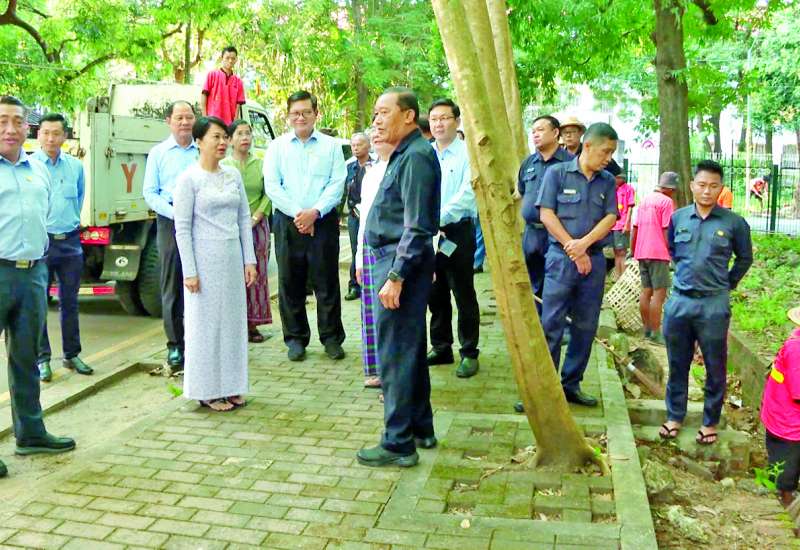 ပညာရေးဝန်ကြီးဌာန ပြည်ထောင်စုဝန်ကြီး ဒေါက်တာချောချောစိန်သည် ဒုတိယဝန်ကြီး ဦးနေမျိုးလှိုင်၊ တာဝန်ရှိသူများနှင့်အတူ ယနေ့နံနက်ပိုင်းတွင် ရန်ကုန်မြို့တော် စည်ပင်သာယာရေး ကော်မတီဝန်ထမ်းများ၊ ရန်ကုန်တက္ကသိုလ် ဝန်ထမ်းများက ရန်ကုန်တက္ကသိုလ်အတွင်း သန့်ရှင်းသာယာ လှပရေးဆောင်ရွက်နေမှုကို ကြည့်ရှုအားပေးသည်။