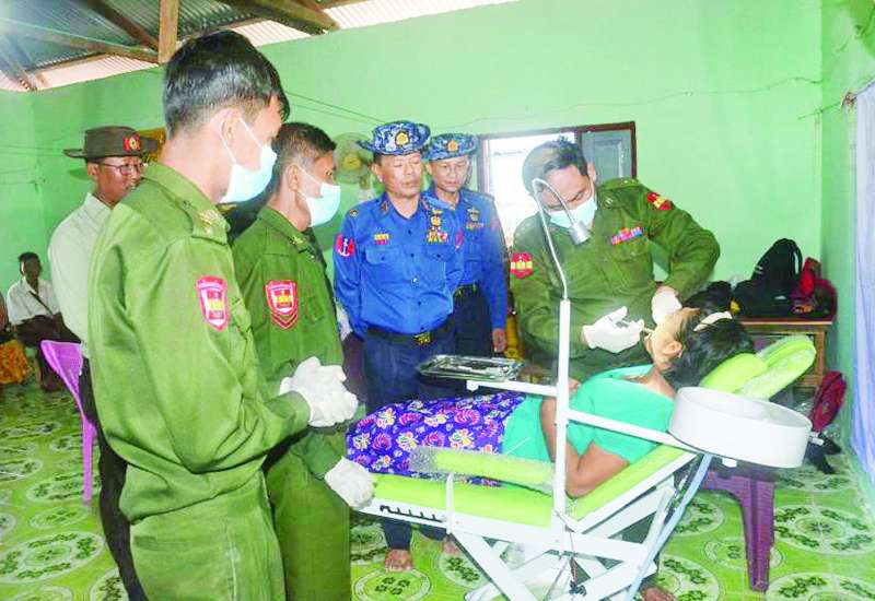 ရန်ကုန်တိုင်းဒေသကြီး၊ ကိုကိုးကျွန်းမြို့နယ်နှင့် ဧရာဝတီတိုင်းဒေသကြီး၊ ဟိုင်းကြီးကျွန်းမြို့နယ်အတွင်းရှိ ကျေးရွာများနှင့် ပတ်ဝန်းကျင်ကျေးရွာများမှ ဒေသခံပြည်သူများအား ကျန်းမာရေးစောင့်ရှောက်မှုလုပ်ငန်းများ ဆောင်ရွက်ပေးရန်အတွက် တပ်မတော်ပင်လယ်သွားဆေးရုံရေယာဉ် (သံလွင်) ဖြင့် ရောက်ရှိနေသည့် တပ်မတော်မှ ပါရဂူများ၊ ဆေးမှူးများနှင့် သူနာပြုများပါဝင်သော တပ်မတော်နယ်လှည့်အထူးကုဆေးအဖွဲ့သည် ယနေ့တွင် ငပုတောမြို့နယ်၊ ချောင်းဝကျေးရွာ၊ ကျောင်းသစ်ကျောင်း ဘုန်းကြီးကျောင်း၌ အခြေပြု၍ ချောင်းဝကျေးရွာနှင့် ပတ်ဝန်းကျင်ကျေးရွာများမှ ဒေသခံပြည်သူ ၅၀၁ ဦးအား ကျန်းမာရေးစောင့်ရှောက်မှုလုပ်ငန်းများ ဆက်လက်ဆောင်ရွက်ပေးသည်။