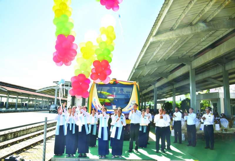 နေပြည်တော် - မန္တလေးရထားလမ်းပိုင်းတွင် ဘက်ထရီလျှပ်စစ်စက်ခေါင်း အသုံးပြုပြီး လေအေးပေးစက်ပါ လေအိတ်ရထားတွဲဆိုင်းဖြင့် စတင်ပြေးဆွဲခြင်းအခမ်းအနားကို ယနေ့နံနက်ပိုင်းတွင် နေပြည်တော်ဘူတာကြီး အမှတ်(၁)စင်္ကြံ ၌ ကျင်းပသည်။