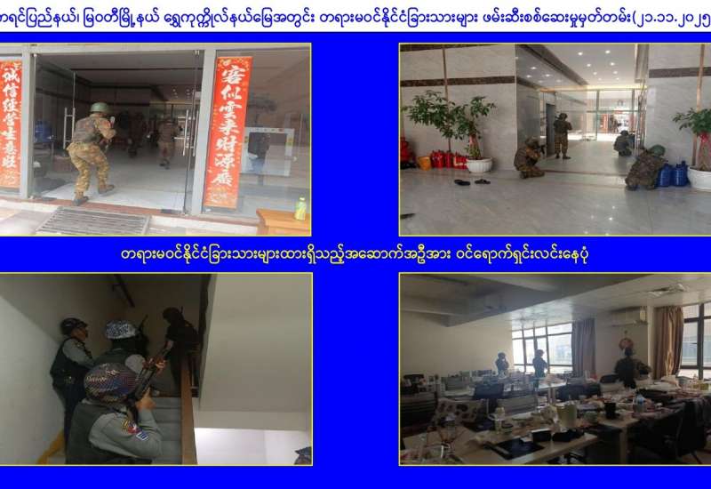 မြန်မာနိုင်ငံအစိုးရအနေဖြင့် နိုင်ငံတကာနှင့် တစ်ကမ္ဘာလုံးကိုအန္တရာယ်ပေးနေသည့် online လိမ်လည်မှုများ၊ online လောင်းကစားမှုများ တိုက်ဖျက်ရေးလုပ်ငန်းစဉ်များကို အလေးထားတိုက်ဖျက်ဆောင်ရွက်လျက်ရှိပြီး အမျိုးသားရေးတာဝန်တစ်ရပ်အနေဖြင့် Online လိမ်လည်လောင်းကစားမှုများကို အများဆုံးအခြေချလုပ်ကိုင်လျက်ရှိကြသည့် ရွှေကုက္ကိုလ်နယ်မြေနှင့် KK Park နယ်မြေများ၌ လုံခြုံရေးတပ်ဖွဲ့ဝင်များ၊ အုပ်ချုပ်ရေးအဖွဲ့အစည်းများအပါအဝင် အဖွဲ့စုံပါဝင်သည့် ပူးပေါင်းစစ်ဆင်ရေးအဖွဲ့များဖြင့် ဝင်ရောက်ရှင်းလင်းခြင်း၊ တရားမဝင်အဆောက်အအုံများအား ဖြိုချဖျက်ဆီးခြင်းများ ဆက်လက်ဆောင်ရွက်လျက်ရှိရာ ယနေ့အထိ မြဝတီ-မဲထော်သလေး (KK Park) နယ်မြေအတွင်းရှိတရားမဝင်အဆောက်အအုံ ၁၉၆ လုံးကို စနစ်တကျဖြိုချဖျက်ဆီးခဲ့ပြီး ရွှေကုက္ကိုလ် နယ်မြေအတွင်း၌ Online လောင်းကစားမှုနှင့် လိမ်လည်မှုများ ကျူးလွန်ခဲ့သည့် ပြည်ပနိုင်ငံသား ၃၅၁ ဦးကိုထပ်မံ ဖော်ထုတ်ထိန်းသိမ်းနိုင်ခဲ့ကြောင်း သိရှိရသည်။