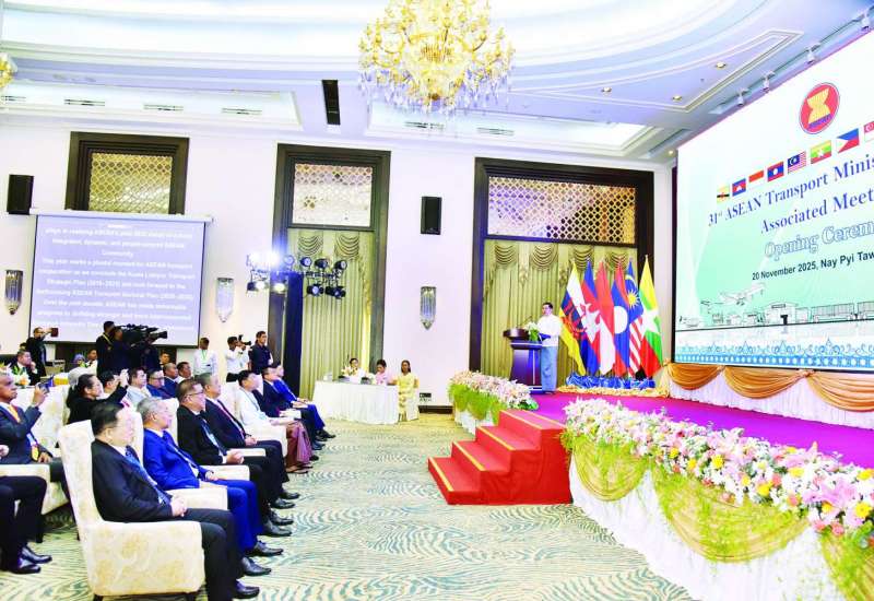 (၃၁)ကြိမ်မြောက် အာဆီယံပို့ဆောင်ရေးဝန်ကြီးများ အစည်းအဝေးနှင့် ဆက်စပ်အစည်းအဝေးများ ဖွင့်ပွဲအခမ်းအနားကို ယနေ့နံနက်ပိုင်းတွင် နေပြည်တော်ရှိ Jasmine Naypyitaw Hotel ၌ ကျင်းပပြုလုပ်ရာ နိုင်ငံတော်ဝန်ကြီးချုပ် ဦးညိုစော တက်ရောက်အမှာစကားပြောကြားသည်။