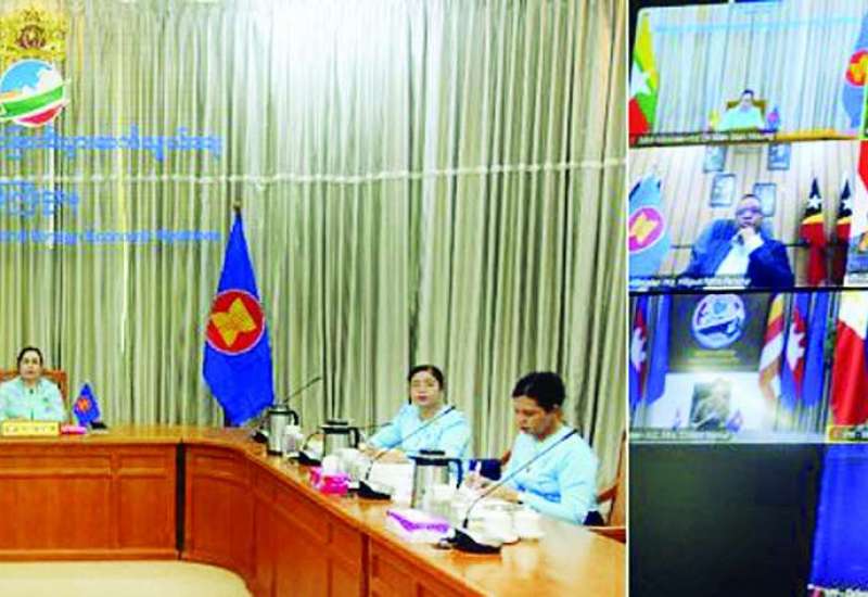 အာဆီယံနှင့် ပစိဖိတ်ဖြတ်ကျော် မိတ်ဖက်ဆက်ဆံမှု ဘက်စုံတိုးတက်ရေးသဘောတူ စာချုပ်ဝင်နိုင်ငံများအကြား ကုန်သွယ်မှုနှင့်ရင်းနှီးမြှုပ်နှံမှုဆိုင်ရာဆွေးနွေးပွဲကို ယနေ့နံနက်ပိုင်းတွင် ဗီဒီယိုကွန်ဖရင့်ဖြင့်ကျင်းပရာ မြန်မာနိုင်ငံ၏ အာဆီယံစီးပွားရေးဝန်ကြီး ရင်းနှီးမြှုပ်နှံမှုနှင့် နိုင်ငံခြားစီးပွားဆက်သွယ်ရေးဝန်ကြီးဌာန ပြည်ထောင်စုဝန်ကြီး ဒေါက်တာဝါဝါမောင် ဦးဆောင်သည့် ကိုယ်စားလှယ်အဖွဲ့ တက်ရောက်ဆွေးနွေးသည်။