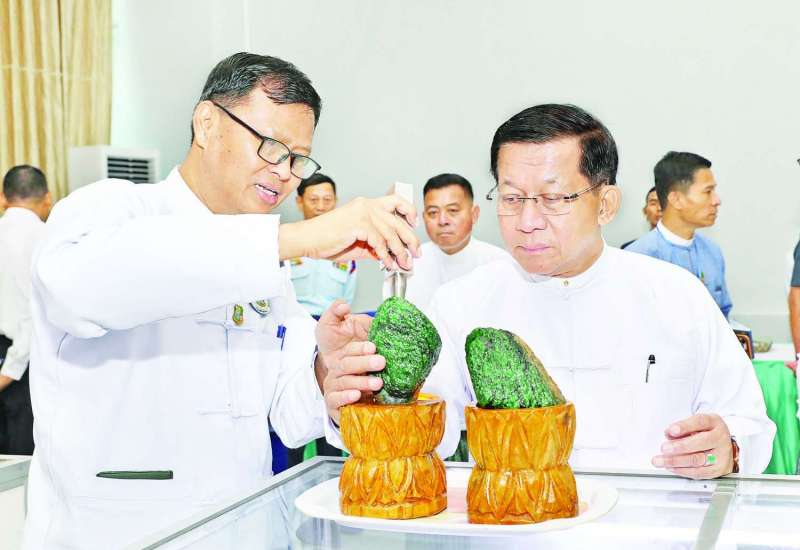 (၆၀)ကြိမ်မြောက် မြန်မာ့ကျောက်မျက်ရတနာပြပွဲ ဖွင့်ပွဲအခမ်းအနားကို ယနေ့နံနက်ပိုင်းတွင် နေပြည်တော်ရှိ မဏိရတနာကျောက်စိမ်းခန်းမ၌ကျင်းပရာ ပြည်ထောင်စုသမ္မတမြန်မာနိုင်ငံတော် ယာယီမ္မတ နိုင်ငံတော်လုံခြုံရေးနှင့် အေးချမ်းသာယာရေးကော်မရှင်ဥက္ကဋ္ဌ ဗိုလ်ချုပ်မှူးကြီးမင်းအောင်လှိုင် တက်ရောက်ချီးမြှင့်သည်။