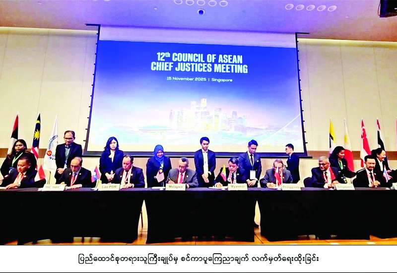 ပြည်ထောင်စုတရားသူကြီးချုပ် ဦးသာဌေးဦးဆောင်သည့် မြန်မာကိုယ်စားလှယ်အဖွဲ့သည် စင်ကာပူနိုင်ငံ တရားလွှတ်တော်ချုပ် တရားသူကြီးချုပ် The Hon. Sundaresh Menon ၏ ဖိတ်ကြားချက်အရ နိုဝင်ဘာ ၁၃ ရက်မှ ၁၅ ရက်အထိ စင်ကာပူနိုင်ငံတွင် ကျင်းပသည့် “(၁၂) ကြိမ်မြောက် အာဆီယံတရားသူကြီးချုပ်များ ကောင်စီအစည်းအဝေး” သို့ တက်ရောက်သည်။