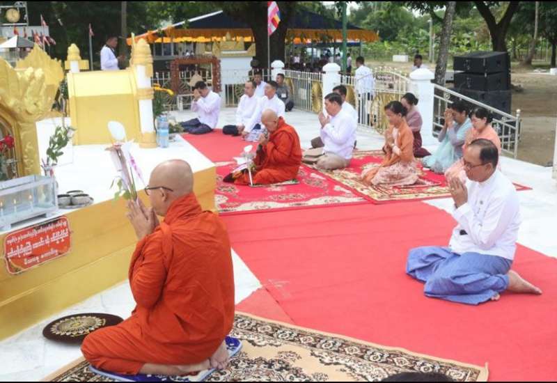 ရခိုင်ပြည်နယ်၊ စစ်တွေမြို့၌ အနောက်ပိုင်းတိုင်းစစ်ဌာနချုပ်နှင့် ကွပ်ကဲမှုအောက် တပ်ရင်း/ တပ်ဖွဲ့များမှ အရာရှိ/ စစ်သည်၊ မိသားစုဝင်တို့၏ စုပေါင်းလှူဒါန်းမှုဖြင့် တည်ထားကိုးကွယ်သော ရန်အောင်ဇေယျသုခမင်္ဂလာစေတီတော်နှင့် မဟာဗောဓိပင်ဂြိုဟ်ရှစ်ခွင် ဗုဒ္ဓရုပ်ပွားတော်များအား ဗုဒ္ဓါဘိသေကဘုရားအနေကဇာတင် အလှူတော်မင်္ဂလာကို ယနေ့နံနက်ပိုင်းတွင် ပြုလုပ်ရာ စစ်တွေမြို့၊ နန္ဒာရာမပရိယတ္တိစာသင်တိုက် ဆရာတော်အဘိဓဇမဟာရဋ္ဌဂုရု ဘဒ္ဒန္တနန္ဒာသီရိ အမှူးပြုသော သံဃာတော်များ ကြွရောက်တော်မူကြပြီး ရခိုင်ပြည်နယ်ဝန်ကြီးချုပ် ဦးထိန်လင်း၊ အနောက်ပိုင်း တိုင်းစစ်ဌာနချုပ်တိုင်းမှူး ဗိုလ်ချုပ် ကျော်စွာဦးနှင့် တာဝန်ရှိသူများ အရာရှိ၊ စစ်သည်၊ မိသားစုဝင်များ တက်ရောက်ကြသည်။