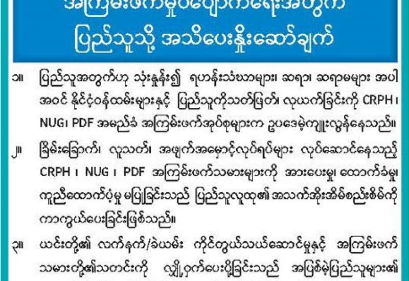 အကြမ်းဖက်မှုပပျောက်ရေးအတွက် ပြည်သူသို့ အသိပေးနှိုးဆော်ချက်
