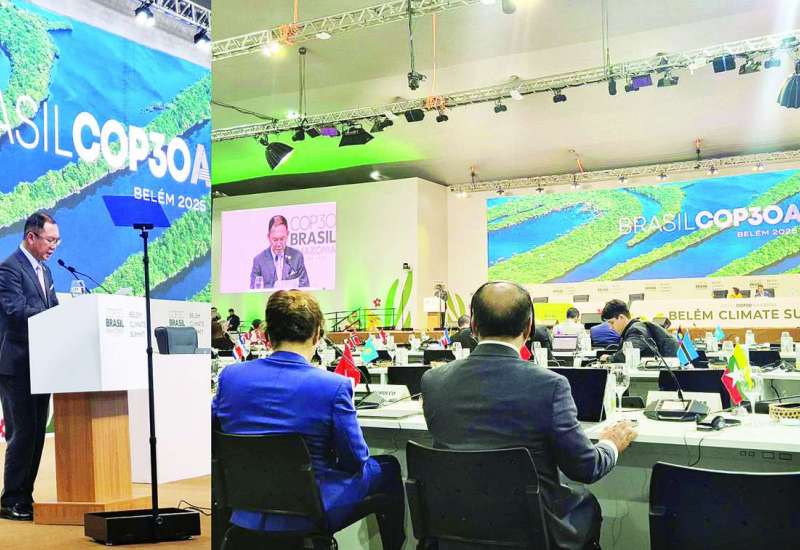 ဘရာဇီးနိုင်ငံသမ္မတ လူးဝစ်အင်နာစီယိုလူလာဒါဆေးလ်ဗား၏ ဖိတ်ကြားချက်အရ ပြည်ထောင်စု သမ္မတမြန်မာနိုင်ငံတော်ယာယီသမ္မတ နိုင်ငံတော်လုံခြုံရေးနှင့် အေးချမ်းသာယာရေးကော်မရှင်ဥက္ကဋ္ဌ ဗိုလ်ချုပ်မှူးကြီး မင်းအောင်လှိုင်(ကိုယ်စား) သယံဇာတနှင့်သဘာဝပတ်ဝန်းကျင်ထိန်းသိမ်း ရေးဝန်ကြီးဌာန ပြည်ထောင်စုဝန်ကြီး ဦးခင်မောင်ရီဦးဆောင်သော မြန်မာကိုယ်စားလှယ်အဖွဲ့သည် ဘရာဇီးနိုင်ငံ ဘဲလ်လမ်မြို့၌ နိုဝင်ဘာ ၆ ရက်မှ ၇ ရက်အထိ ကျင်းပသည့် ဘဲလ်လမ်ရာသီဥတုဆိုင်ရာ ထိပ်သီးအစည်းအဝေး (Belem Climate Summit) ဒုတိယနေ့ စုံညီအစည်းအဝေးနှင့် ဘာသာရပ်ဆိုင်ရာ စားပွဲဝိုင်း ဆွေးနွေးပွဲများသို့ တက်ရောက်ခဲ့သည်။