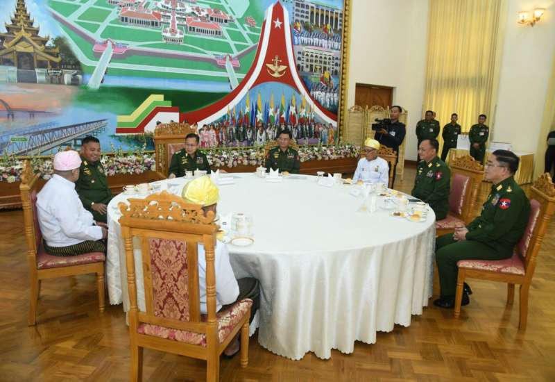 (၈၁) နှစ်မြောက် တပ်မတော်နေ့စစ်ရေးပြအခမ်းအနားသို့ တက်ရောက်ကြမည့် လွတ်လပ်ရေးမော်ကွန်းဝင်ပုဂ္ဂိုလ် ဒုတိယအဆင့် ၁ ဦးနှင့် တတိယအဆင့် ၂ ဦး စုစုပေါင်း ၃ ဦးတို့အား နိုင်ငံတော်လုံခြုံရေးနှင့် အေးချမ်းသာယာရေးကော်မရှင် ဒုတိယဥက္ကဋ္ဌ ဒုတိယတပ်မတော်ကာကွယ်ရေးဦးစီးချုပ် ဒုတိယဗိုလ်ချုပ်မှူးကြီး စိုးဝင်းက ယနေ့ နံနက်ပိုင်းတွင် နေပြည်တော်ရှိ ဘုရင့်နောင်ရိပ်သာ ဧည့်ခန်းမဆောင်၌ လက်ဘက်ရည်ဝိုင်းဖြင့် တည်ခင်းဧည့်ခံ၍ ဂါရဝပြုတွေ့ဆုံသည်။