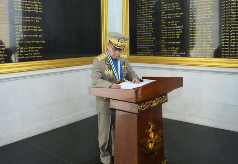 ယနေ့တွင် ကျရောက်သည့် (၈၁) နှစ်မြောက် တပ်မတော်နေ့ အထိမ်းအမှတ်အဖြစ် ယနေ့နံနက်ပိုင်းတွင် သူရဲကောင်းဗိမာန် (နေပြည်တော်) ၌ ဂုဏ်ပြုပန်းခြင်းချ အလေးပြုခြင်းအခမ်းအနားကို ကျင်းပပြုလုပ်ရာ နိုင်ငံတော်လုံခြုံရေးနှင့် အေးချမ်းသာယာရေးကော်မရှင်ဥက္ကဋ္ဌ တပ်မတော်ကာကွယ်ရေးဦးစီးချုပ် ဗိုလ်ချုပ်မှူးကြီး သတိုးမဟာသရေစည်သူ သတိုးသီရိသုဓမ္မ မင်းအောင်လှိုင်ကိုယ်စား နိုင်ငံတော်လုံခြုံရေးနှင့် အေးချမ်းသာယာရေးကော်မရှင် ဒုတိယဥက္ကဋ္ဌ ဒုတိယတပ်မတော်ကာကွယ်ရေးဦးစီးချုပ် ဒုတိယဗိုလ်ချုပ်မှူးကြီး သီရိပျံချီမဟာသရေစည်သူ စိုးဝင်းတက်ရောက်၍ ဂုဏ်ပြုပန်းခြင်းချအလေးပြုသည်။