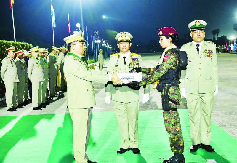 (၈၁) နှစ်မြောက် တပ်မတော်နေ့ စစ်ရေးပြအခမ်းအနားတွင် ဆုရရှိကြသော စစ်ရေးပြတပ်ခွဲများအား ဂုဏ်ပြုဆုချီးမြှင့်ပွဲကို ယနေ့ညပိုင်းတွင် နေပြည်တော်ရှိ စုရပ်သစ်တပ်စစ်ရေးပြကွင်း၌ ကျင်းပပြုလုပ်ရာ နိုင်ငံတော်လုံခြုံရေးနှင့် အေးချမ်းသာယာရေးကော်မရှင်အဖွဲ့ဝင် ညှိနှိုင်းကွပ်ကဲရေးမှူး (ကြည်း၊ ရေ၊ လေ) ဗိုလ်ချုပ်ကြီး ဇေယျကျော်ထင်သရေစည်သူ ကျော်စွာလင်း တက်ရောက်၍ ဆုများကို ပေးအပ်ချီးမြှင့်သည်။