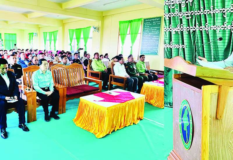 နယ်စပ်ရေးရာဝန်ကြီးဌာန ပညာရေးနှင့် လေ့ကျင့်ရေးဦးစီးဌာန ကွပ်ကဲမှုအောက်ရှိ နယ်စပ်ဒေသတိုင်းရင်းသားလူငယ်များ စက်မှုလက်မှုပညာ သင်တန်းကျောင်းသုံးကျောင်းနှင့် အမျိုးသမီးအိမ်တွင်းမှု သက်မွေးလုပ်ငန်း ပညာသင်တန်းကျောင်း ၁၃ ကျောင်းတို့၌ သက်မွေးဝမ်းကျောင်းသင်တန်းများ ဖွင့်လှစ်ခဲ့ရာ စက်မှုကျောင်းများတွင် ဆောက်လုပ်ရေးသင်တန်း၊ လျှပ်စစ်သင်တန်း၊ ဂဟေသင်တန်း၊ မော်တော်ယာဉ်စက်ပြင်သင်တန်း၊ လက်ကိုင်ဖုန်း ပြင်သင်တန်း၊ ဟိုတယ်ဝန်ဆောင်မှု ဆိုင်ရာသင်တန်းများ၊ အိမ်တွင်းမှု သင်တန်းကျောင်းများတွင် အဆင့်မြင့်အိမ်တွင်းမှု စက်ချုပ်သင်တန်းနှင့် ဟိုတယ်ဝန်ဆောင်မှုဆိုင်ရာသင်တန်းများ၏ သင်တန်းဆင်းပွဲများအား ယနေ့နံနက်ပိုင်းတွင်ကျင်းပခဲ့ရာ အောင်ပန်းမြို့ စက်မှုသင်တန်းကျောင်း၌ ရှမ်းပြည်နယ်ဝန်ကြီးချုပ် ဦးအောင်အောင် တက်ရောက်သင်တန်းဆင်း အမှာစကားပြောကြားသည်။