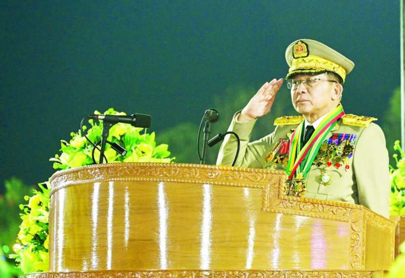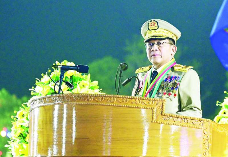 (၈၁) နှစ်မြောက် တပ်မတော်နေ့စစ်ရေးပြအခမ်းအနားကို ယနေ့ညပိုင်းတွင် နေပြည်တော်စစ်ရေးပြကွင်း၌ ကျင်းပပြုလုပ်ရာ နိုင်ငံတော်လုံခြုံရေးနှင့် အေးချမ်းသာယာရေးကော်မရှင်ဥက္ကဋ္ဌ တပ်မတော်ကာကွယ်ရေးဦးစီးချုပ် ဗိုလ်ချုပ်မှူးကြီး သတိုးမဟာသရေစည်သူ သတိုးသီရိသုဓမ္မ မင်းအောင်လှိုင် တက်ရောက်မိန့်ခွန်းပြောကြားသည်။