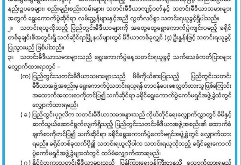 ၂၀၂၅ ခုနှစ် ပါတီစုံဒီမိုကရေစီအထွေထွေရွေးကောက်ပွဲ အပိုင်းလိုက်နေ့ရက်များတွင် ပြည်တွင်းနှင့် နိုင်ငံတကာသတင်းမီဒီယာများ သတင်းရယူခွင့်ရှိကြောင်း အသိပေးကြေညာခြင်း