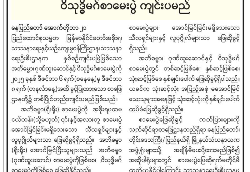 အဘိဓမ္မာ၊ ဂုဏ်ထူးဆောင်နှင့်ဝိသုဒ္ဓိမဂ်စာမေးပွဲ ကျင်းပမည်
