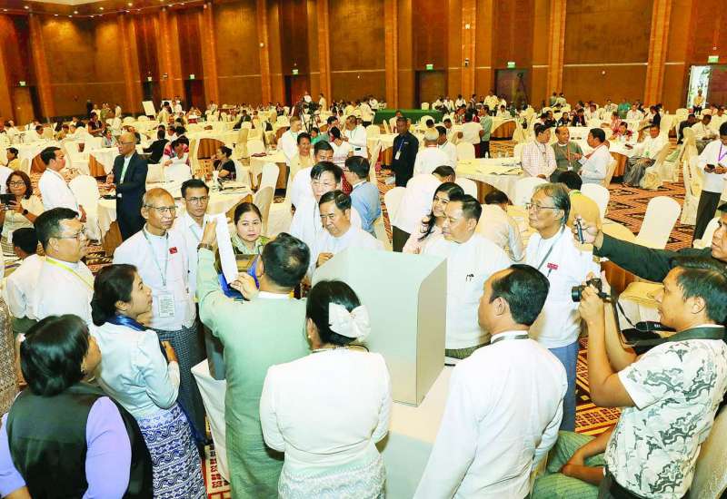 တစ်နိုင်ငံလုံး ပစ်ခတ်တိုက်ခိုက်မှုရပ်စဲရေး သဘောတူစာချုပ်(NCA)(၁၀)နှစ်ပြည့် နှစ်ပတ်လည်နေ့အထိမ်းအမှတ် အစီအစဉ်အဖြစ် “ငြိမ်းချမ်းသော မြန်မာ့အနာဂတ်တည်ဆောက်ခြင်း” အလုပ်ရုံဆွေးနွေးပွဲတတိယနေ့ကို နေပြည်တော်ရှိ မြန်မာအပြည်ပြည်ဆိုင်ရာ ကွန်ဗင်းရှင်း ဗဟိုဌာန(၁) ကျောက်စိမ်းခန်းမ၌ ကျင်းပသည်။