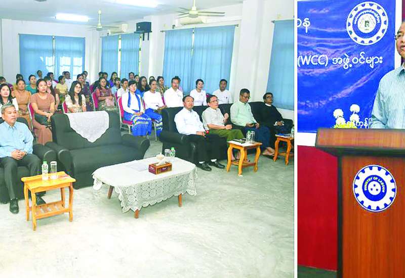 အလုပ်သမားဝန်ကြီးဌာန ဒုတိယဝန်ကြီး ဦးဝင်းရှိန်သည် ယနေ့နံနက်ပိုင်းတွင် ရန်ကုန်တိုင်းဒေသကြီး လှိုင်သာယာမြို့နယ်ရှိ အမျိုးသားလုပ်ငန်းခွင် ဘေးအန္တရာယ်ကင်းရှင်းရေးနှင့် ကျန်းမာရေးသင်တန်းကျောင်း၌ အလုပ်သမားရေးရာလုပ်ငန်းညှိနှိုင်းရေးကော်မတီ(WCC) အဖွဲ့ဝင်များ၏ လုပ်ငန်းစွမ်းရည်မြှင့်သင်တန်းဖွင့်ပွဲသို့ တက်ရောက်သည်။