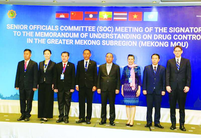 မူးယစ်ဆေးဝါးထိန်းချုပ်ရေးဆိုင်ရာ မဲခေါင်နားလည်မှုစာချွန်လွှာလက်မှတ်ရေးထိုးထားသည့် အဖွဲ့ဝင်နိုင်ငံများ၏ အဆင့်မြင့်အရာရှိကြီးများအစည်းအဝေးကို ယနေ့နံနက် ၉ နာရီတွင် မြန်မာ နိုင်ငံမှအိမ်ရှင်အဖြစ် ရန်ကုန်မြို့ Chatrium Hotel ၌ ကျင်းပသည်။