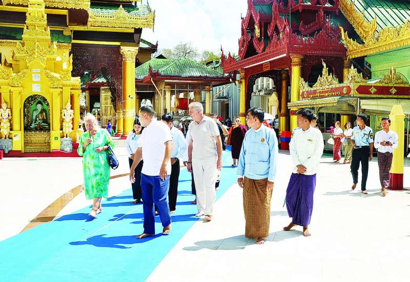 ရုရှားဖက်ဒရေးရှင်းနိုင်ငံ စိန့်ပီတာစဘတ်မြို့အစိုးရအဖွဲ့ဝင် ပြည်ပဆက်ဆံရေးကော်မတီဥက္ကဋ္ဌ Mr.Evgeny Grigoryev နှင့်ဇနီးတို့သည် ယနေ့နံနက်ပိုင်းတွင် ရွှေတိဂုံစေတီတော်မြတ်ကြီးအား သွားရောက်ကြည်ညိုလေ့လာကြသည်။
