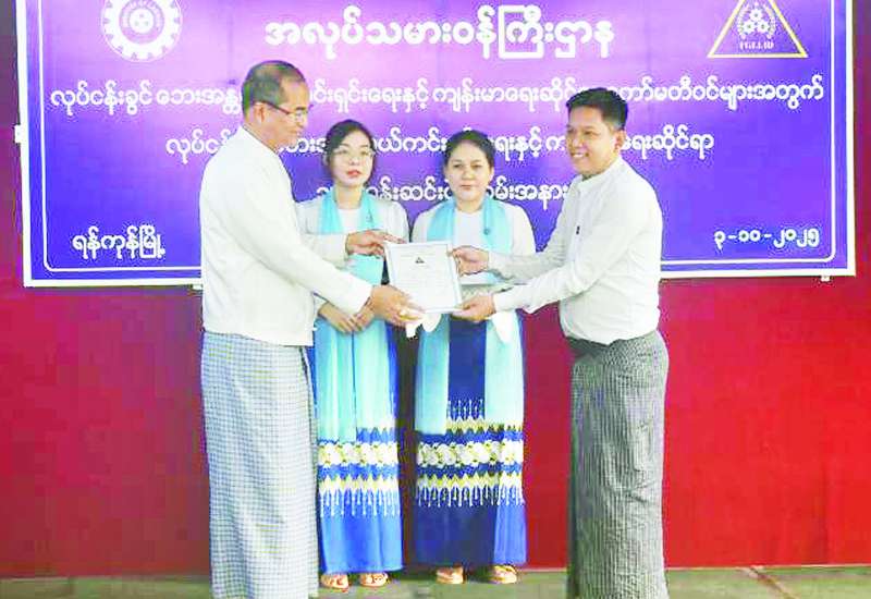 လုပ်ငန်းခွင်ဘေးအန္တရာယ်ကင်းရှင်းရေးနှင့် ကျန်းမာရေးဆိုင်ရာ ကော်မတီဝင်များအတွက် လုပ်ငန်းခွင်ဘေးအန္တရာယ်ကင်းရှင်းရေးနှင့် ကျန်းမာရေးဆိုင်ရာ သင်တန်းအမှတ်စဉ် (၁၆/၂၀၂၅) သင်တန်းဆင်းပွဲကို ယနေ့နံနက်ပိုင်းတွင် ရန်ကုန်တိုင်းဒေသကြီး လှိုင်သာယာမြို့နယ်ရှိ အမျိုးသားလုပ်ငန်းခွင် ဘေးအန္တရာယ်ကင်းရှင်းရေးနှင့် ကျန်းမာရေးဆိုင်ရာ သင်တန်းကျောင်း၌ ကျင်းပသည်။