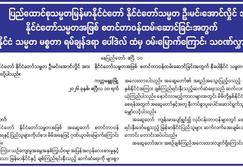 ပြည်ထောင်စုသမ္မတမြန်မာနိုင်ငံတော် နိုင်ငံတော်သမ္မတ ဦးမင်းအောင်လှိုင်အား နိုင်ငံတော်သမ္မတအဖြစ် စတင်တာဝန်ထမ်းဆောင်ခြင်းအတွက် နီပေါနိုင်ငံ သမ္မတ မစ္စတာရမ်ချန်ဒရာပေါ်ဒဲလ် ထံမှ ဝမ်းမြောက်ကြောင်း သဝဏ်လွှာပေးပို့