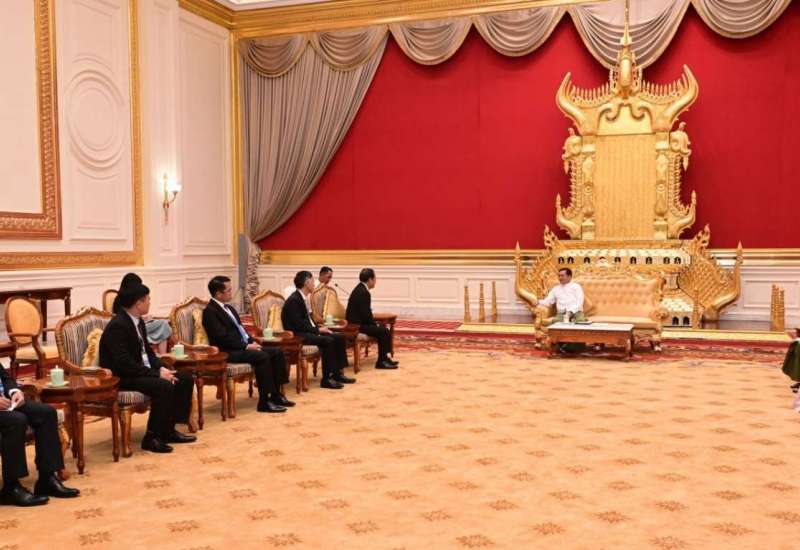 ပြည်ထောင်စုသမ္မတမြန်မာနိုင်ငံတော်သမ္မတ ဦးမင်းအောင်လှိုင်ထံ နိုင်ငံတော်သမ္မတအဖြစ် ကတိသစ္စာပြုခြင်းအခမ်းအနားသို့ တက်ရောက်ခဲ့သည့် ကမ္ဘောဒီးယားနိုင်ငံအစိုးရ၏ အာဆီယံဆိုင်ရာအထူးကိုယ်စားလှယ်နှင့် ဘုရင့်အတိုင်ပင်ခံကောင်စီအဖွဲ့ဝင် H.E.Mr. Kitti Settha Pandita CHAM Prasidh ဦးဆောင်သည့် ကိုယ်စားလှယ်အဖွဲ့က ယနေ့မွန်းညနေပိုင်းတွင် နိုင်ငံတော်သမ္မတ၏ ဧည့်ဆောင်တော်၌ လာရောက်ဂါရဝပြုတွေ့ဆုံသည်။