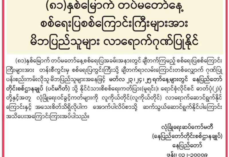 အကြမ်းဖက်အုပ်စုအဖြစ်ကြေညာထားသည့် CRPH ၊ NUG နှင့် ယင်းတို့၏ လက်ဝေခံအဖွဲ့အစည်းများ၊ ယင်းတို့နှင့် ဆက်နွှယ်နေသော အဖွဲ့အစည်းများ၊ လူပုဂ္ဂိုလ်များသည် နိုင်ငံတော်တည်ငြိမ်အေးချမ်းရေးကို ပျက်ပြားစေရန်နှင့် အစိုးရယန္တရားများပျက်ပြားစေရန် ရည်ရွယ်လျက် လှုံ့ဆော်ခြင်း၊ ဝါဒဖြန့်ခြင်းများပြုလုပ်ခဲ့မှုအပေါ် ဥပဒေနှင့်အညီ ထိရောက်စွာ အရေးယူသွားမည်ဖြစ်ကြောင်းနှင့် ထိုသို့လှုံ့ဆော်သူ၊ ဝါဒဖြန့်သူများအား ဆက်လက်ဖော်ထုတ်အရေးယူသွားမည်ဖြစ်ကြောင်း မိဘပြည်သူများ သိရှိနိုင်ရေး အသိပေးသတင်းထုတ်ပြန်ပြီးဖြစ်သည်။