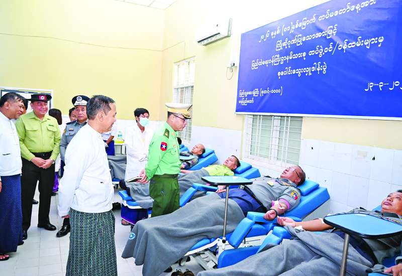 (၈၁)နှစ်မြောက် တပ်မတော်နေ့ကို ကြိုဆိုဂုဏ်ပြုသောအားဖြင့် ပြည်ထဲရေးဝန်ကြီးဌာနအောက်ရှိ တပ်ဖွဲ့/ဦးစီးဌာနများမှ တပ်ဖွဲ့ဝင်နှင့် ဝန်ထမ်းများက စုပေါင်းသွေးလှူဒါန်းခြင်းကို ယနေ့နံနက်ပိုင်းတွင် နေပြည်တော် ဇမ္ဗူသီရိမြို့နယ်ရှိ နေပြည်တော်ပြည်သူ့ ဆေးရုံကြီး (ခုတင်-၁၀၀၀) နှင့် ဇေယျာသီရိမြို့နယ်ရှိ အမှတ်(၂) တပ်မတော်ဆေးရုံကြီး (ခုတင်- ၁၀၀၀) တို့၌ တစ်ချိန်တည်း ကျင်းပသည်။