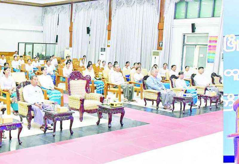 ဒုတိယအကြိမ် ရှေးဦးအရွယ်ကလေးသူငယ်ဖွံ့ဖြိုးရေးအခြေအနေ တိုင်းတာစစ်ဆေးမှုနှင့် ပြန်လည်ထူထောင်ရေးဆိုင်ရာ (ECI) မွမ်းမံသင်တန်းဖွင့်ပွဲကို ယနေ့နံနက်ပိုင်းတွင် လူမှုဝန်ထမ်း၊ ကယ်ဆယ်ရေးနှင့်ပြန်လည်နေရာချထားရေးဝန်ကြီးဌာန စုပေါင်းခန်းမ၌ ကျင်းပရာ ပြည်ထောင်စုဝန်ကြီး ဒေါက်တာ စိုးဝင်း၊ ဒုတိယဝန်ကြီး၊ အမြဲတမ်းအတွင်းဝန်၊ ဌာနဆိုင်ရာတာဝန်ရှိသူများ၊ ဘာသာရပ်ဆိုင်ရာနည်းပြများ၊ တိုင်းဒေသကြီးနှင့် ပြည်နယ်များမှ သင်တန်းသား သင်တန်းသူများ တက်ရောက်ကြ သည်။