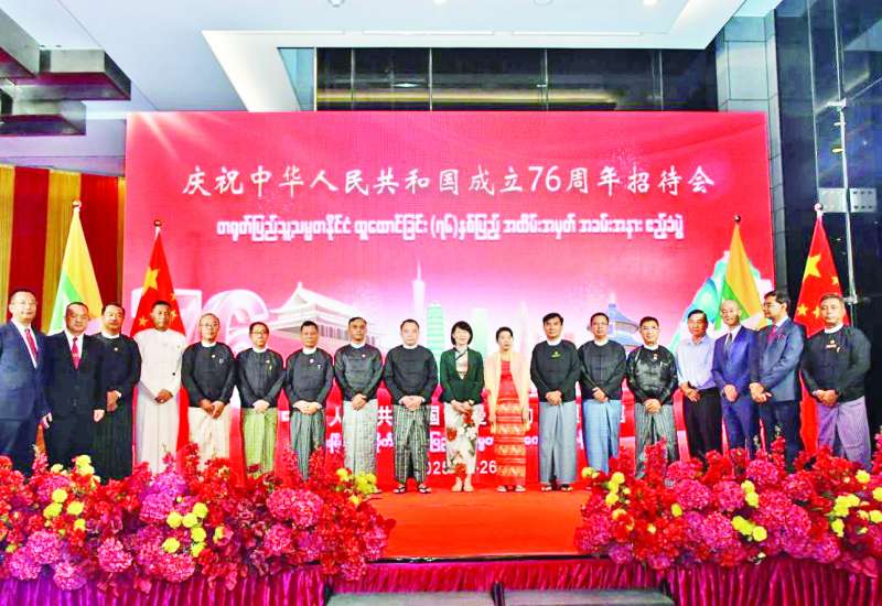 တရုတ်ပြည်သူ့သမ္မတနိုင်ငံတည်ထောင်သည့် (၇၆)နှစ်မြောက်နှစ်ပတ်လည်နှင့် မြန်မာ-တရုတ် သံတမန်ဆက်ဆံရေး(၇၅)နှစ်ပြည့် အထိမ်းအမှတ်ဧည့်ခံပွဲကို စက်တင်ဘာ ၂၆ ရက်ညနေပိုင်းတွင် မန္တလေးတိုင်းဒေသကြီး မန္တလေးမြို့ ချမ်းမြသာစည်မြို့နယ်ရှိ မင်္ဂလာမန္တလေးဟိုတယ်၌ ကျင်းပပြုလုပ်ရာ အလယ်ပိုင်းတိုင်းစစ်ဌာနချုပ် တိုင်းမှူး ဗိုလ်မှူးချုပ် တင်မင်းလတ်၊ တိုင်းဒေသကြီး တရားလွှတ်တော်တရားသူကြီးချုပ်၊ တိုင်းဒေသကြီးအစိုးရအဖွဲ့ဝင် ဝန်ကြီးများနှင့် တာဝန်ရှိသူများ၊ မန္တလေးမြို့အခြေစိုက် တရုတ်ပြည်သူ့သမ္မတနိုင်ငံ ကောင်စစ်ဝန်ချုပ်ရုံးမှ ကောင်စစ်ဝန်ချုပ် Ms. Gao Ping နှင့် ကောင်စစ်ဝန်ချုပ်ရုံးမှ တာဝန်ရှိသူများ၊ ဖိတ်ကြားထားသည့် ဧည့်သည်တော်များ တက်ရောက်ကြပြီး တိုင်းမှူးနှင့်တာဝန်ရှိသူများက ခင်းကျင်းပြသထားသည့် တရုတ်နိုင်ငံ၏ သမိုင်းကြောင်း မှတ်တမ်းဓာတ်ပုံများကို ကြည့်ရှုကြသည်။