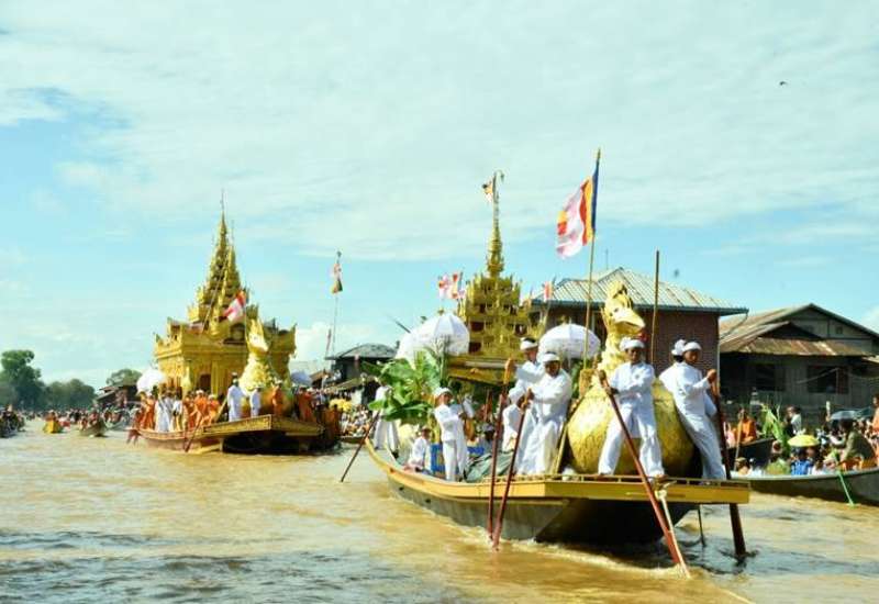 ရုပ်ရှင်တော်မြတ်လေးဆူအား ညောင်ရွှေမြို့ရှိအင်းလေးဖောင်တော်ဦးမြတ်စွာဘုရား လင်းကင်းကျေးရွာမှ အဋ္ဌဒိသာ ဓမ္မဝိဟာရ ဒေသစာရီစံကျောင်းတော်ကြီးသို့ ပင့်ဆောင်အပူဇော်ခံပွဲနှင့် အင်းသားရိုးရာလှေပြိုင်ပွဲကို ယနေ့နံနက်ပိုင်းတွင် ပြုလုပ်ရာ ရှမ်းပြည်နယ်အစိုးရအဖွဲ့ ပြည်နယ်ဝန်ကြီးချုပ် ဦးအောင်အောင်၊ အရှေ့ပိုင်းတိုင်းစစ်ဌာနချုပ်၊ တိုင်းမှူး ဗိုလ်မှူးချုပ်နိုင်ဇော်ဦးနှင့် တာဝန်ရှိသူများ၊ ဌာနဆိုင်ရာ တာဝန်ရှိသူများ၊ ဖိတ်ကြားထားသူများနှင့် ဒေသခံတိုင်းရင်းသား ပြည်သူများတက်ရောက်ကြသည်။