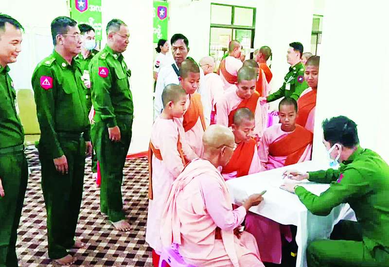 တပ်မတော်အနေဖြင့် ပြည်သူလူထု၏ ကျန်းမာရေးကဏ္ဍတိုးတက်မြင့်မားစေရန်အတွက် ကျန်းမာရေးစောင့်ရှောက်မှုလုပ်ငန်းများတွင် တစ်ဖက်တစ်လမ်းမှ ကူညီစောင့်ရှောက်မှုများ ဆောင်ရွက်ပေးလျက်ရှိရာ ယနေ့နံနက်ပိုင်းတွင် အရှေ့ပိုင်းတိုင်းစစ်ဌာနချုပ် နယ်လှည့်ဆေးကုသရေးအဖွဲ့က ရှမ်းပြည်နယ် (တောင်ပိုင်း) ရပ်စောက်မြို့နယ် ထီးခမ်းကျေးရွာရှိ ဒေသခံတိုင်းရင်းသားပြည်သူများအား အဆိုပါကျေးရွာရှိ ထီးတစ်ပင်ကျောင်းတိုက်၌ အခြေပြု၍ ကျန်းမာရေးစောင့်ရှောက်မှုလုပ်ငန်းများ ဆောင်ရွက်ပေးသည်။