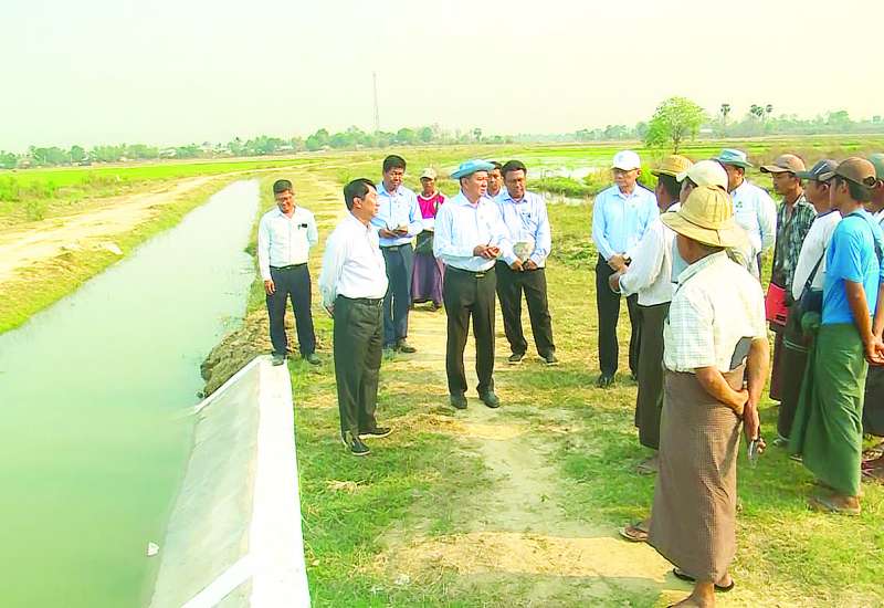 စိုက်ပျိုးရေး၊ မွေးမြူရေးနှင့်ဆည်မြောင်းဝန်ကြီးဌာန ဒုတိယဝန်ကြီး ဦးဗိုလ်ဗိုလ်ကျော်သည် တာဝန်ရှိသူများနှင့်အတူ ယမန်နေ့ မွန်းလွဲပိုင်းက ပြည်ထောင်စုနယ်မြေ နေပြည်တော်လယ်ဝေးမြို့နယ်ရှိ သီးနှံစိုက်ဧကများ ပိုမိုတိုးတက်စေရေးနှင့် ပန်းတိုင်အထွက်နှုန်း ပြည့်မီကျော်လွန်စေရေးအတွက် ချောင်းမငယ်နှင့် မဒန်းဆည်ရေသောက်စနစ်အတွင်း မြောင်းအဖျားပိုင်းဧရိယာများအထိ နွေစပါးနှင့် နွေအခြားသီးနှံစိုက်ပျိုးရေလုံလောက်စွာ ပေးဝေနေမှုအခြေအနေများကို ကြည့်ရှုစစ်ဆေးသည်။