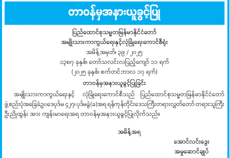 ပြည်ထောင်စုတရားလွှတ်တော်ချုပ် တရားသူကြီးများ ခန့်အပ်တာဝန်ပေးခြင်း