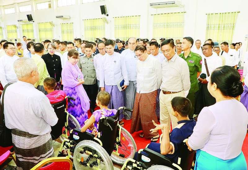 နယ်စပ်ရေးရာဝန်ကြီးဌာန ဒုတိယဝန်ကြီး ဗိုလ်ချုပ်ဖြိုးသန့်သည် တာဝန်ရှိသူများနှင့်အတူ ယမန်နေ့က အောင်ပန်းမြို့ရှိ နယ်စပ်ဒေသ တိုင်းရင်းသားလူငယ်များ စက်မှုလက်မှုပညာသင်တန်းကျောင်းသို့ သွားရောက်ကြည့်ရှုစစ်ဆေးသည်။