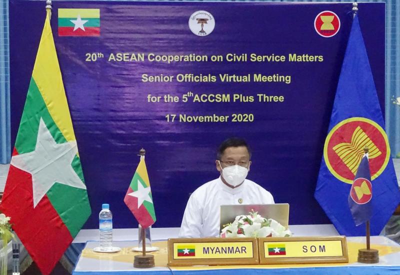 အကြိမ်(၂၀)မြောက် အာဆီယံနိုင်ငံ့ဝန်ထမ်း အဖွဲ့အစည်းဆိုင်ရာ အဆင့်မြင့် အရာရှိကြီး များ အစည်းအဝေးနှင့် (၅)ကြိမ်မြောက် အာဆီယံ+၃ နိုင်ငံ့ဝန်ထမ်းအဆင့်မြင့်အရာရှိကြီးများ အစည်းအဝေးကို ယနေ့နံနက်ပိုင်းတွင် ဗီဒီယိုကွန်ဖရင့် စနစ်ဖြင့် ကျင်းပသည်။