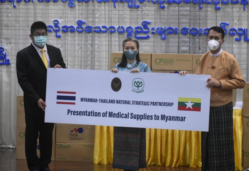 ရန်ကုန်တိုင်းဒေသကြီး ကိုဗစ် - ၁၉ ရောဂါ ကာကွယ်ရေးလုပ်ငန်းများတွင်အသုံးပြုရန် ရန်ကုန်တိုင်း ဒေသကြီးအစိုးရအဖွဲ့ထံ MYANMAR C.P LIVE STOCK Co. Ltd မှ Surgical Mask ၃၀၀၀၀၀ (သုံးသိန်း) လှူဒါန်းသည့် အခမ်းအနားကို တိုင်းဒေသကြီးအစိုးရအဖွဲ့ရုံး မင်္ဂလာခန်းမ တွင် ယနေ့ နံနက်က ကျင်းပသည်။