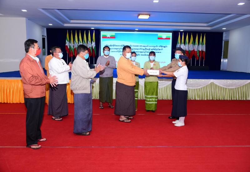 ရန်ကုန်တိုင်းဒေသကြီးအတွင်း ကိုဗစ်-၁၉ ရောဂါကာကွယ်ခြင်း လုပ်ငန်းများ၌ ပါဝင်ဆောင်ရွက်ရန် သွားရောက်ကြမည့် ရှမ်းပြည်နယ် (တောင်ပိုင်း)မှ ကြက်ခြေနီစေတနာ့ လုပ်အားရှင်များအား ထောက်ပံ့ငွေပေးအပ်ခြင်းကို ယမန်နေ့ ညနေ(၃)နာရီက တောင်ကြီးမြို့ ရှမ်းပြည်နယ်အစိုးရအဖွဲ့ရုံး အစည်း အဝေးခန်းမ၌ ကျင်းပသည်။